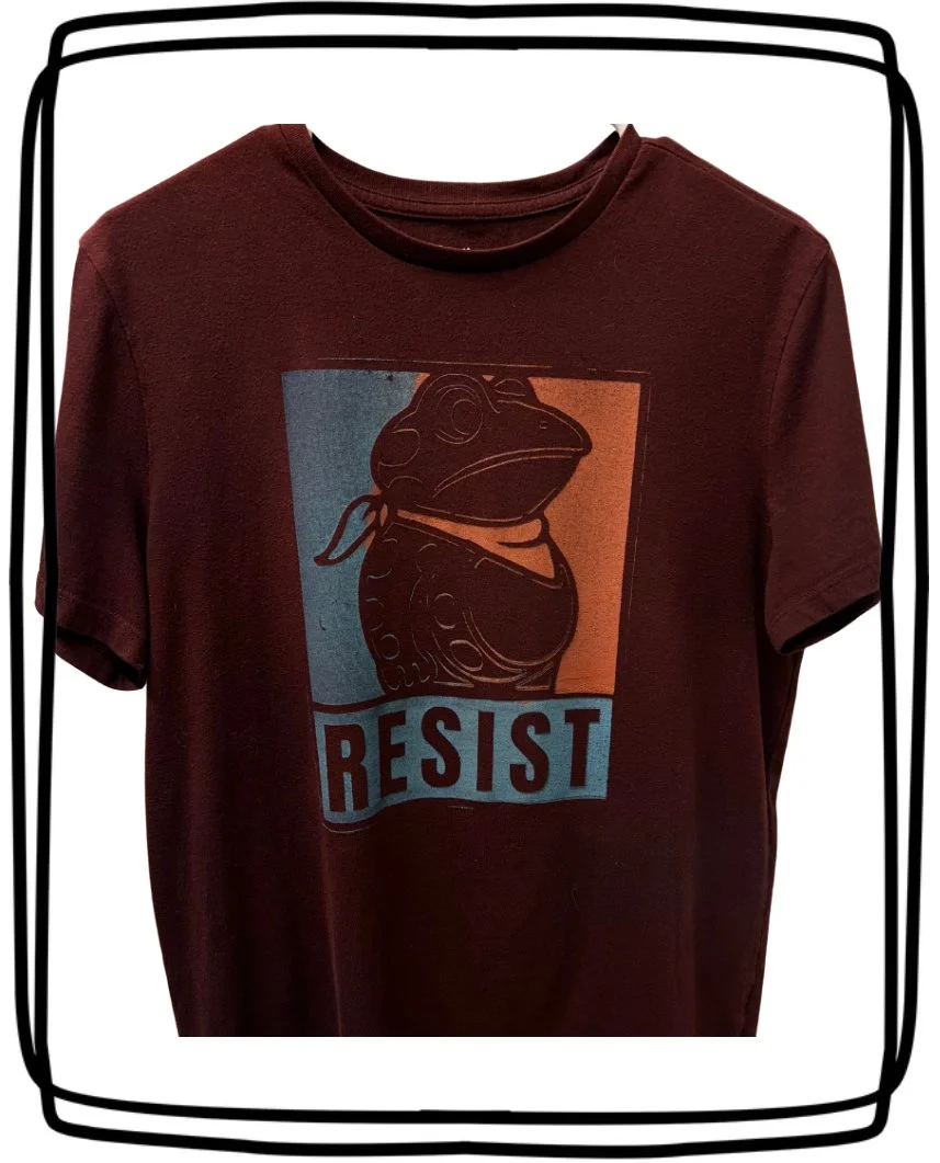 The Portland Frog is a national inspiration in the face of this inept tyrannical administration. Wear and resist! Screen printed, vintage feel.