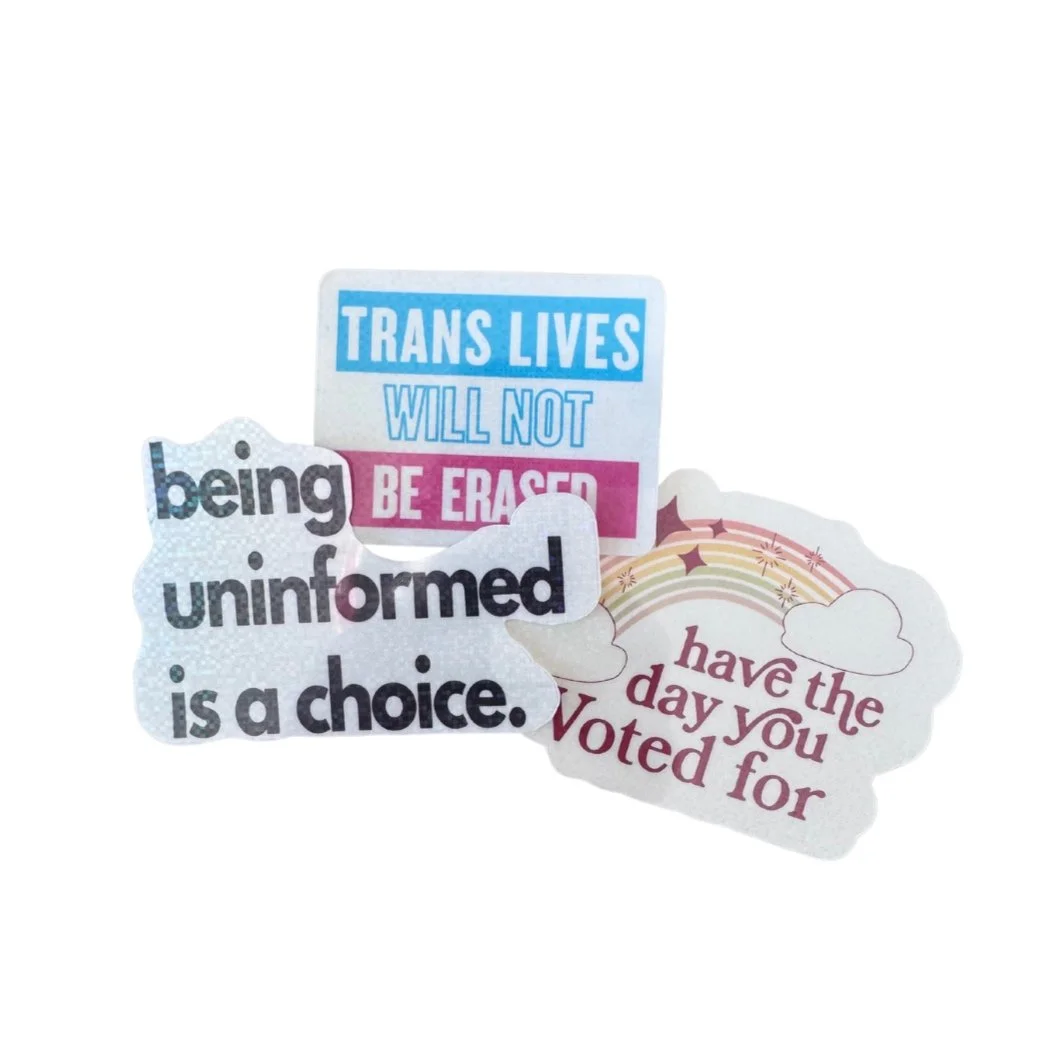 I do not price my items, it’s purely donation based making it available to anyone who wants to share their protest out loud. You set your price. See the Home page for purchasing details.